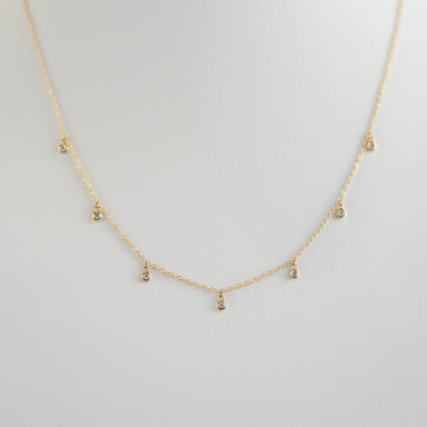 The Alina Bezel Diamond Drop Necklace is wonderfully crafted with seven gorgeous diamonds in a drop bezel setting. made from solid 14 karat yellow...