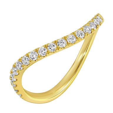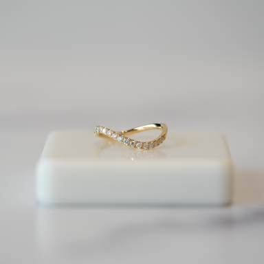 Introducing the Gabrielle Diamond Wave Ring, featuring 17 sparkling round diamonds that dance in the light. Crafted from solid 14 karat yellow gold...